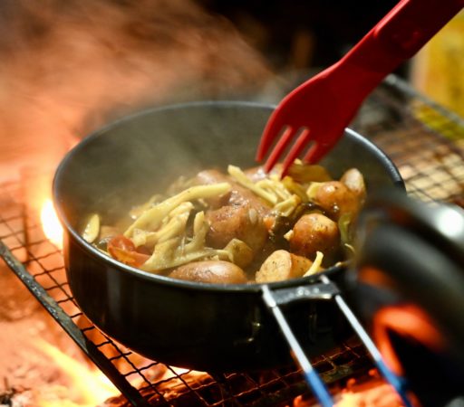 パラパラと参加者が集まり、それぞれに自分の陣地を確保してから共同スペースで食事を始める。自分は最初に湯で戻すフリーズドライのガパオライスを食べ、それからソーセージと茸を炒めてトマトを追加しスープに。この間に乾杯が入りあれこれ談笑。冷え込んでくる夕方以降は、温かいものをジワジワと身体に入れ続けるのがいい。その点でボリュームがあり栄養バランスのとれたスープはおすすめだ。地物食材を入れると場所との結びつきが強まった感じがする。なお就寝までにシェルターに置いてあったビニール包装の胡桃パン二個が次々と姿を消した。猫を見たとの証言あり。
