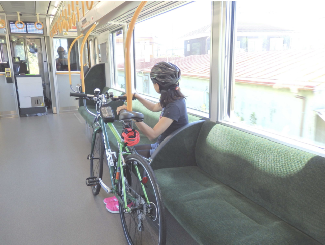 もう一つが「サイクルトレイン・サイクルバス実証運行」である。自転車を電車に積載する場合通常は車輪を外しペダルなどを養生して、いわゆる輪行袋に収まった形で自転車を車内に持ち込む必要がある。サイクルトレインはそのような必要なく、自転車をそのまま車内に持ち込むことができる。このようなサイクルトレインは近年、日本中の様々な地域でも鉄道会社によって運用されている事例が見受けられる。