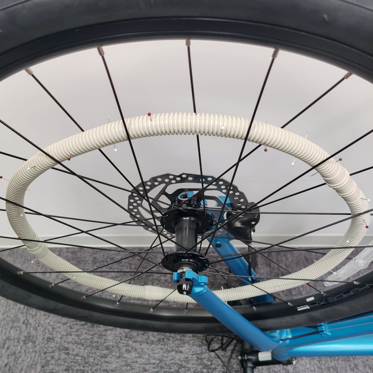 個人的には小さなビーズを入れて、ホースを正円になるように取り付けるのが気に入っている。ビデオでは4’00″あたりから聞けるように、高めの音域で定常性が強くなるとともに周期性も感じられる。もちろん、他のバリエーションも更に探求したい。ただ、スポークの間隔は意外と狭いので、取り付けに苦労する。細く柔らかいホースが扱い易いが、自転車のホイールも進化して欲しいところ。