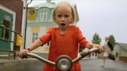 ロッタは自転車が欲しい。兄や姉が颯爽と乗っているからだ。何でも一緒でないと気が済まないお年頃。5歳の誕生日に期待していたが、まだ早い、三輪車で我慢しなさい、とたしなめられる。そこで近所のおばさんの物置から自転車を失敬する。だが、まともに乗りこなせるはずもなく、坂を転がり、生垣に突っ込んでしまう。不貞腐れていると、パパが小さな赤い自転車を持ってきて…といったお話。
