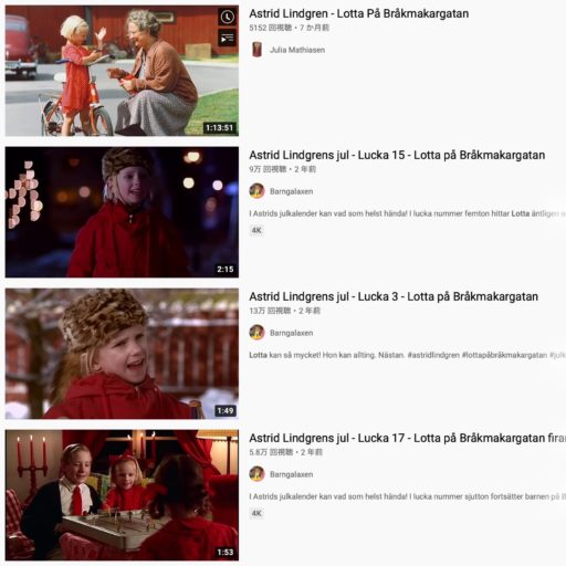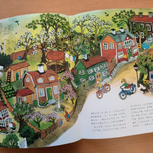 ところで、ロッタがすぐに自転車に乗ったことが解せない。生垣に突進したとは言え、倒れずに坂道を下っている。自分用の赤い自転車も、最初に兄が支えた後は、すぐに一人で乗りこなしている。普通は自転車に乗れるまで随分と苦労するはずだ。となると作者は自転車の経験があるのか疑わしい。ただ、伝記映画には自転車に乗るシーンがあるので、これは御伽噺的ご都合主義かもしれない。