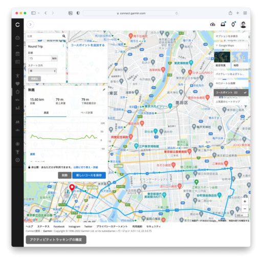 前編では、Garmin Connectで走行データをコースに変換した。ただ、走ったことがないなど走行データがないこともある。そこで後編では、ゼロから新しいコースを作成する。これはスタート・ポイントとゴール・ポイントを指定するだけだ。スタート・ポイントだけを指定して元に戻ることもできる。これだけでコースが作成されるので、必要な修正を加えてコースを完成させることになる。