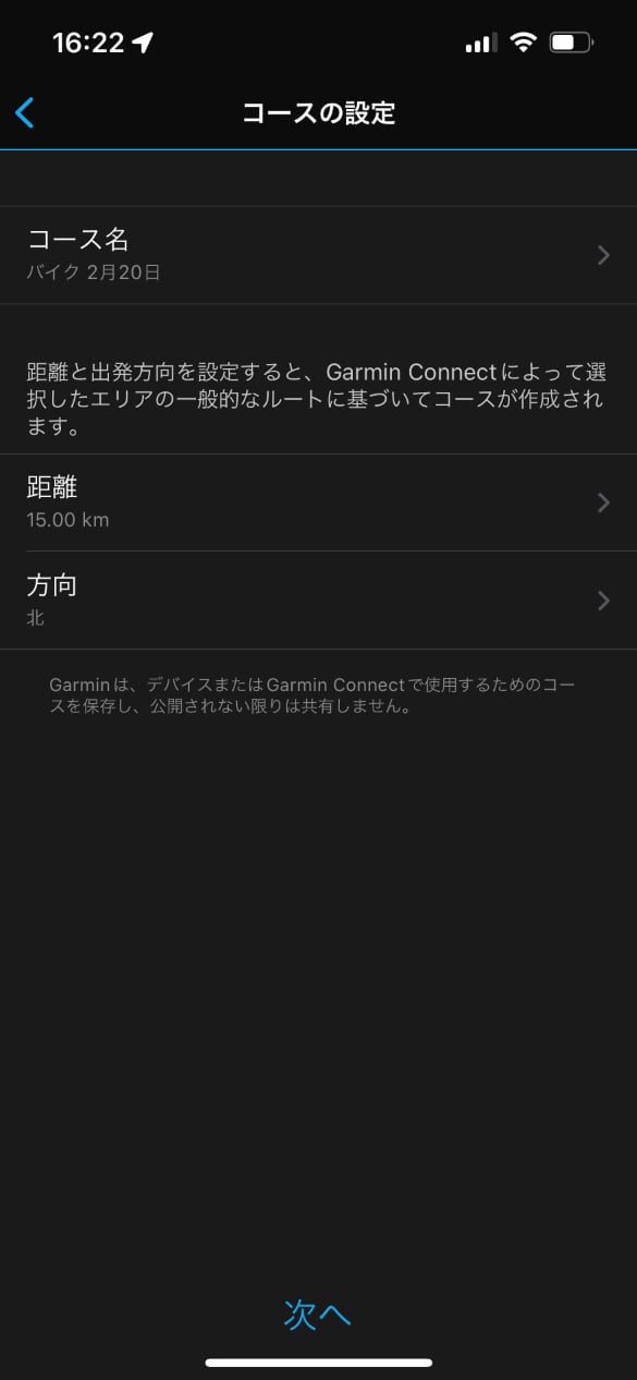 描画方法を選択すれば、コース名、距離、方向を設定し、スタート・ポイントをタップする。
