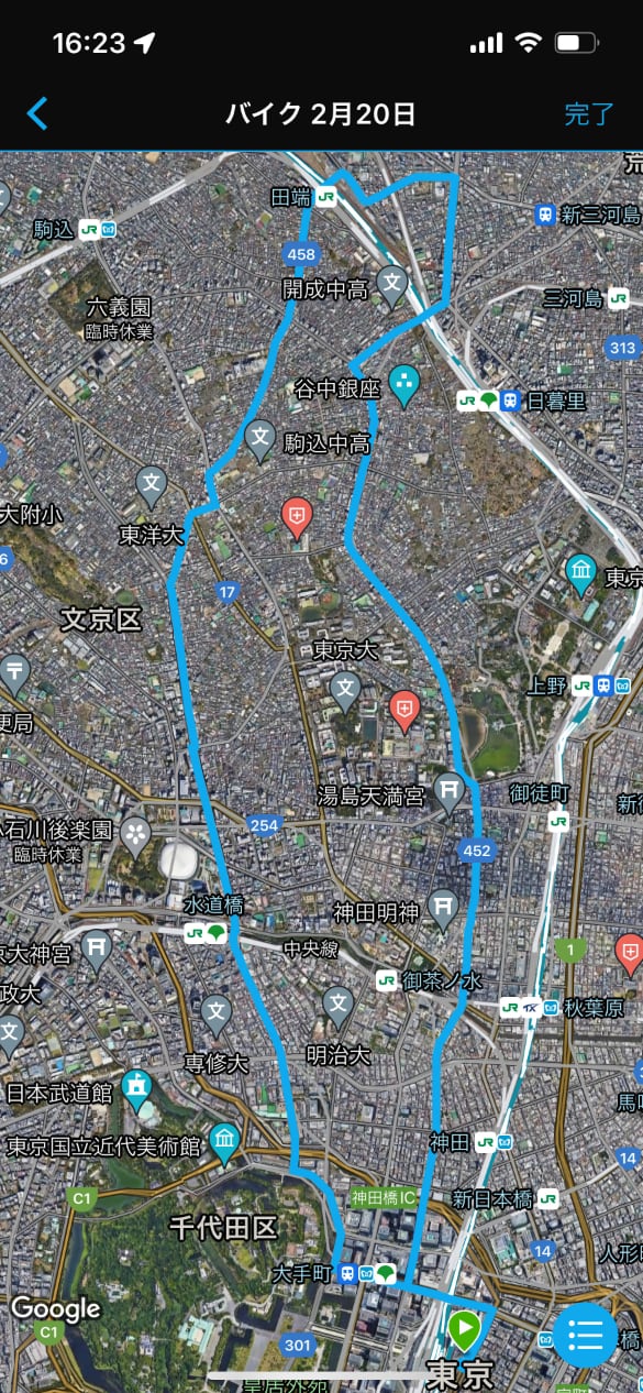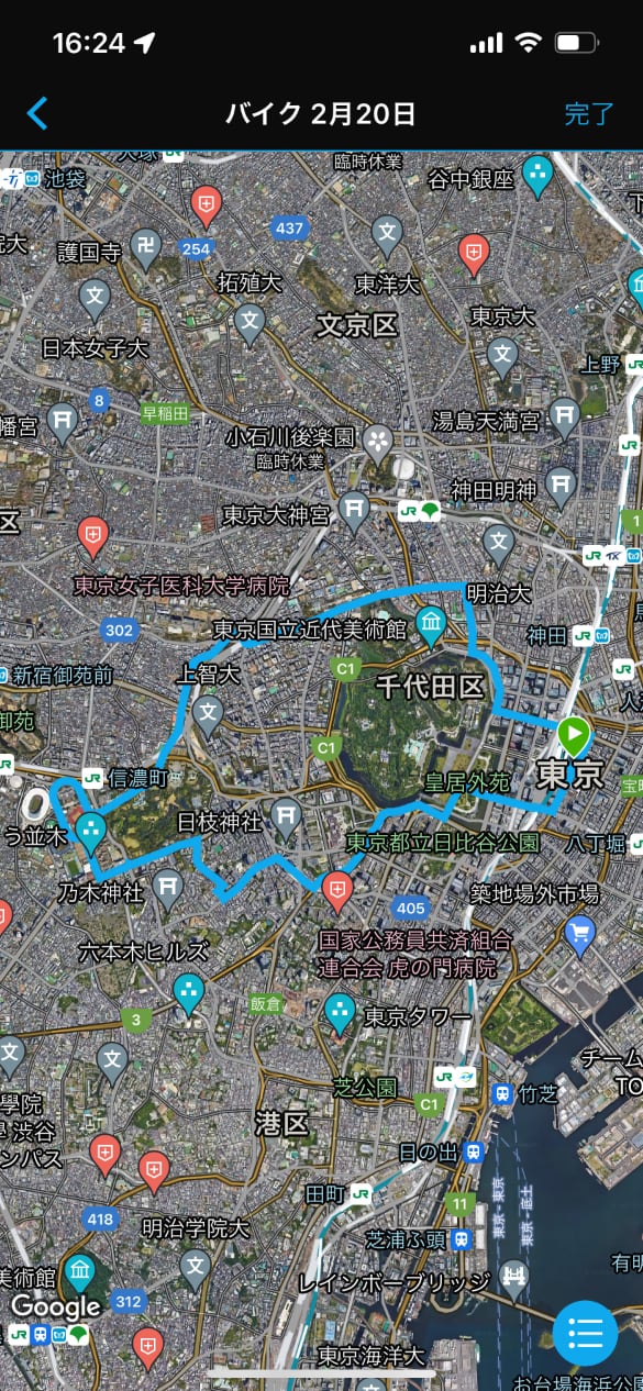 東京駅からは15kmの南方向のコースは作成できなかった。