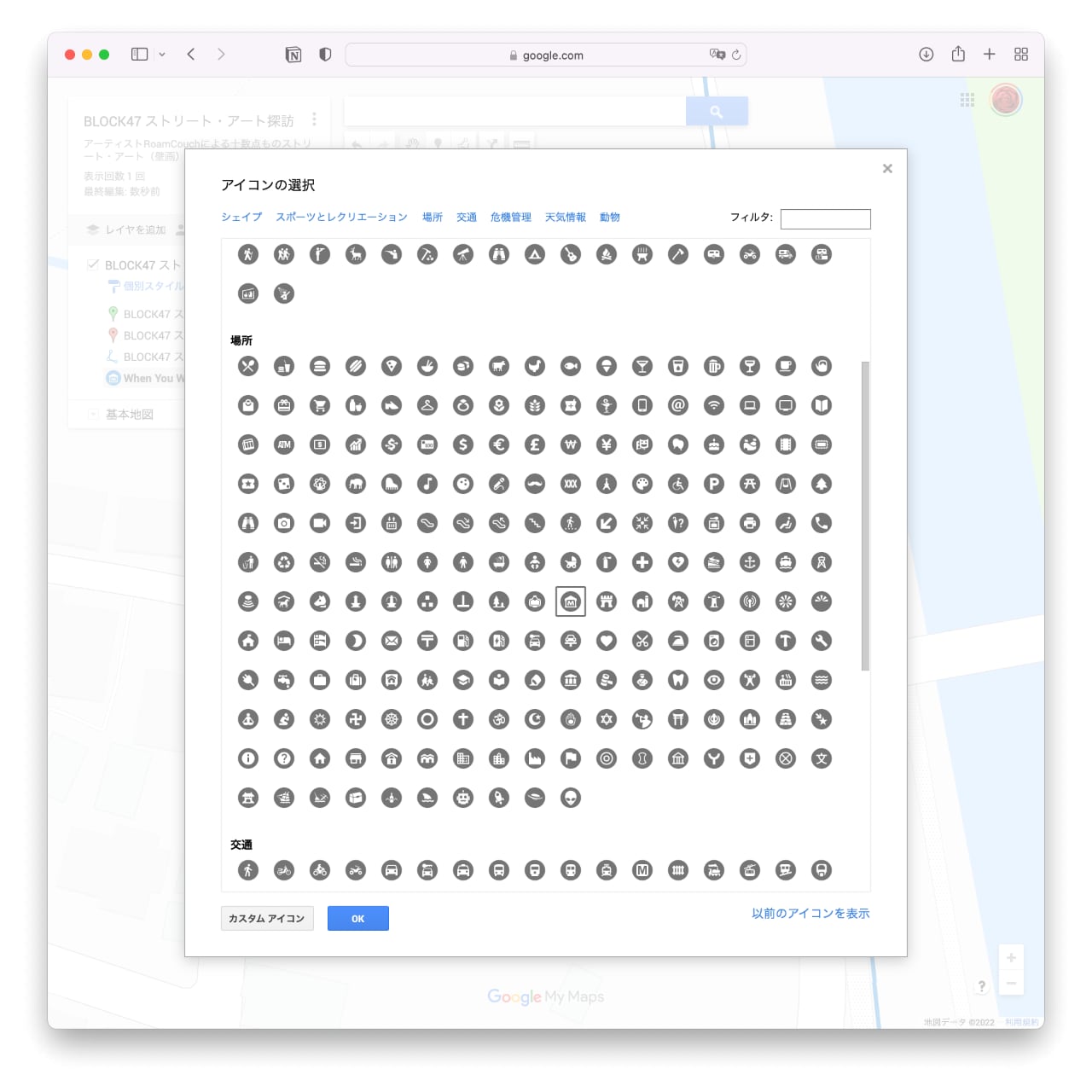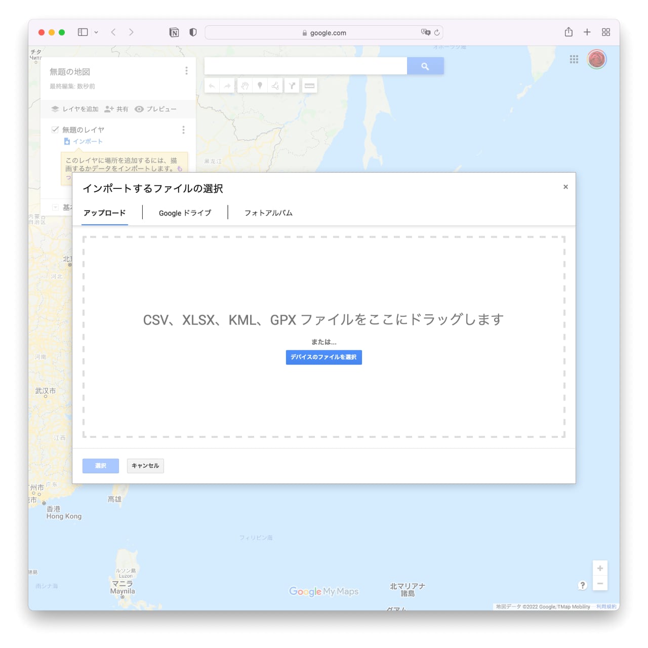 Googleマップのマイマップを作成