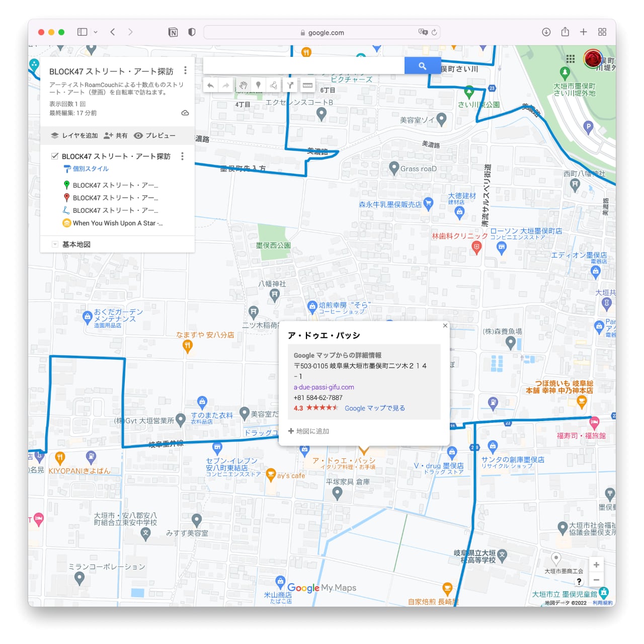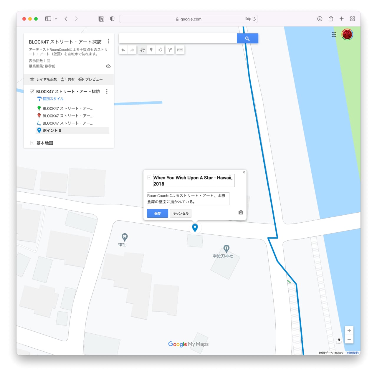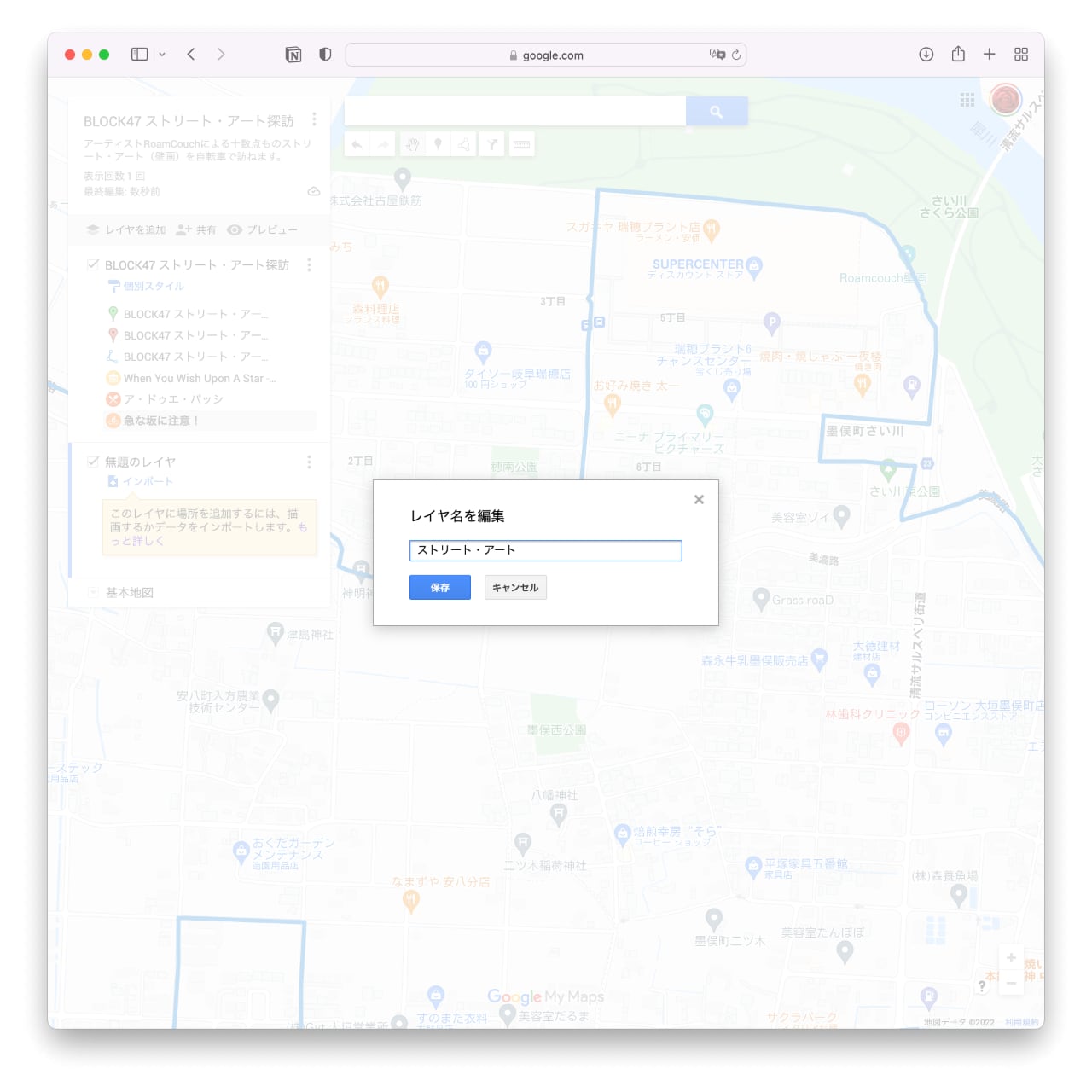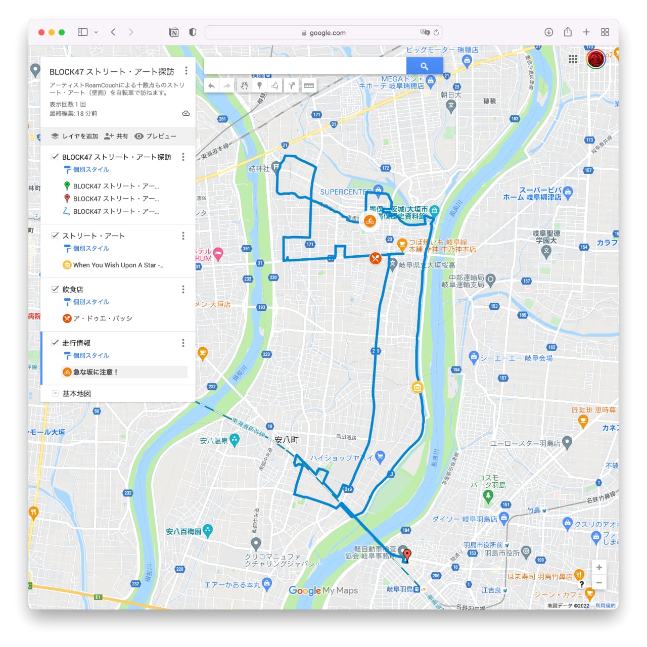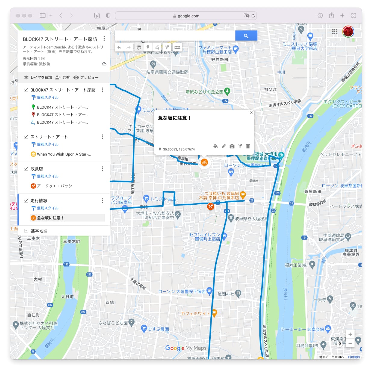 Googleマイマップでサイクリング・コースを共有
