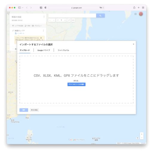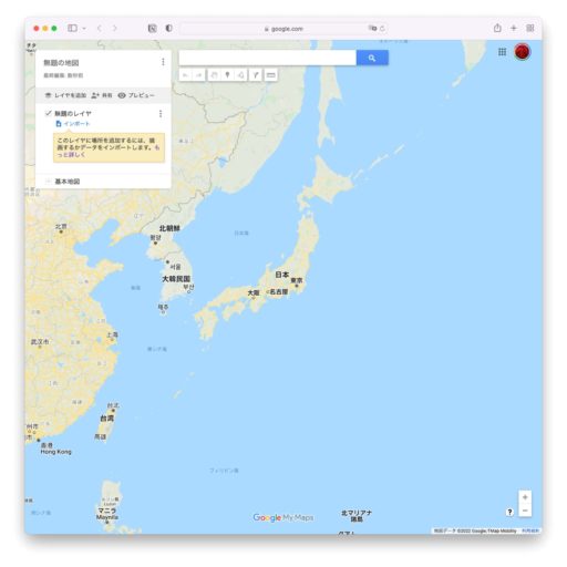 新しく作成された地図が表示されるので「インポート」をクリック。