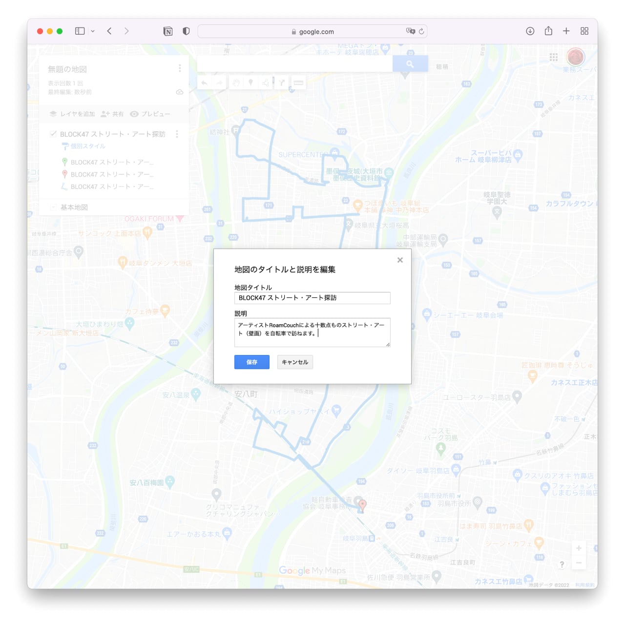 地図のタイトルと説明を入力する。