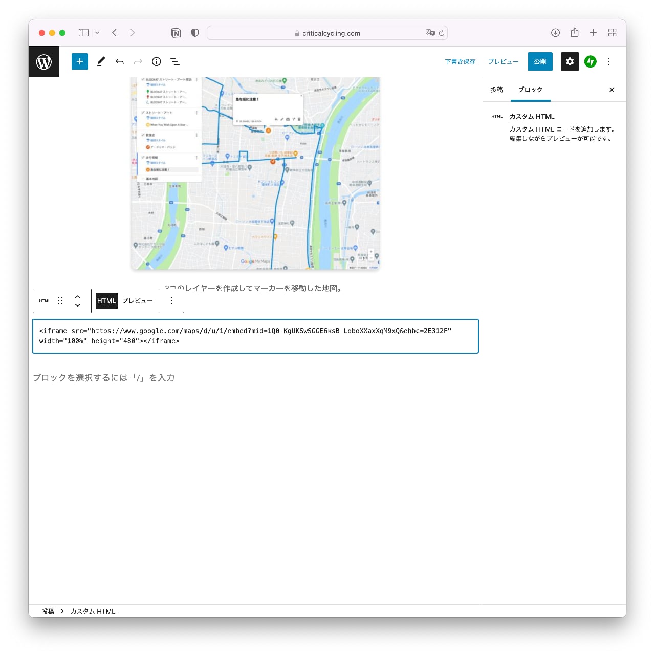 WordPressでマイマップを表示する場合は、