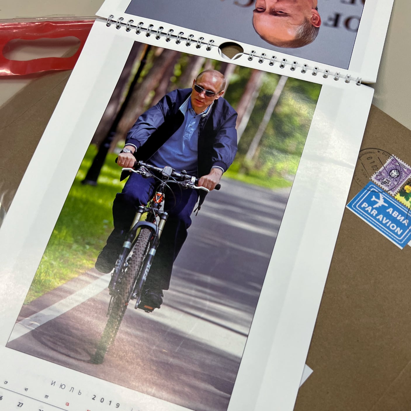 【追記】発注していた自転車に乗るプーチンを含むカレンダーがモスクワから届いた。PayPal決済の承認に時間がかかっただけでなく、その後に発送したとの連絡があってから受け取るまでに16日間もかかった。航空便にしては異様に遅かったのは何故だろうか。紙も印刷もクオリティが低いのはご愛嬌。