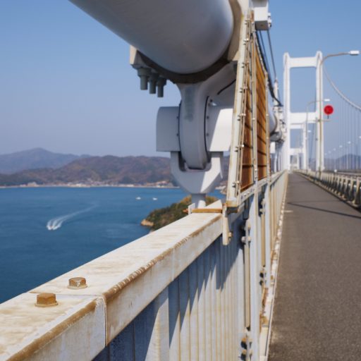 しまなみ海道のもうひとつの特徴は、島から島へと渡る橋が大きく長いことだ。それに比して橋桁の位置が高く、たっぷりヒルクラムが楽しめる。筆者は電動アシストのおかげで苦もなかったが、自転車から降りて押し歩く人も少なくない。そして上りきれば雄大な景色が待っている。歩行者・自転車専用道路を快走しながら、穏やかな海と島々を遠くまで見渡すことができる。