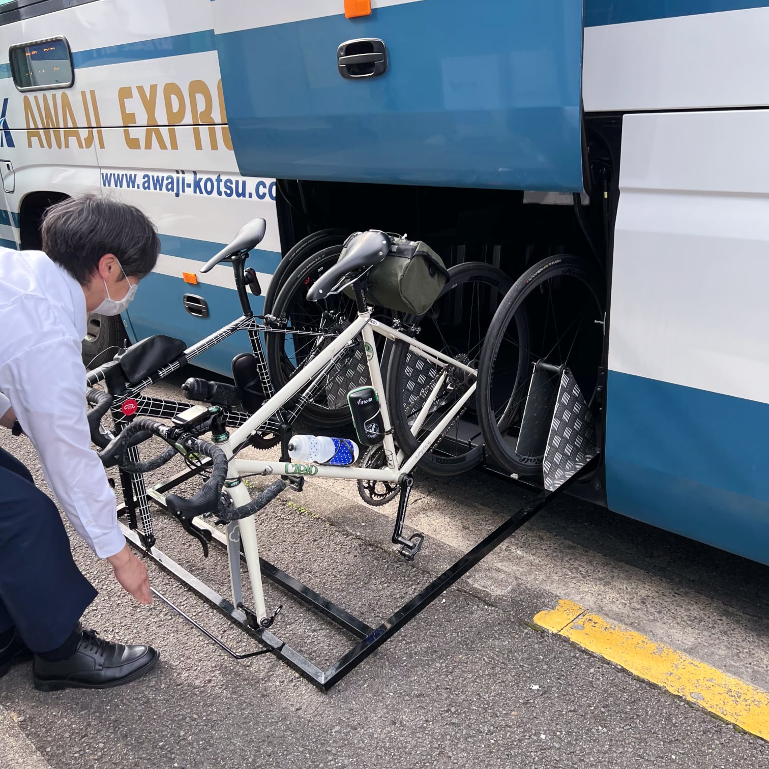 ちなみに淡路島側のバス停には複雑なアプローチが必要。これは一般道からの自転車通行が禁止されているため。ただ、自転車を押して歩くか、バス停横の駐車場まで自家用車で入れば良さそうだ。また、路線バスの一時停車なので、積み下ろしは素早く行いたい。しかし、焦る必要はない。運転手さんが手伝ってくれるし、慣れているのか乗客も見守ってくれる。自転車への理解と配慮が伺えるのは嬉しい。