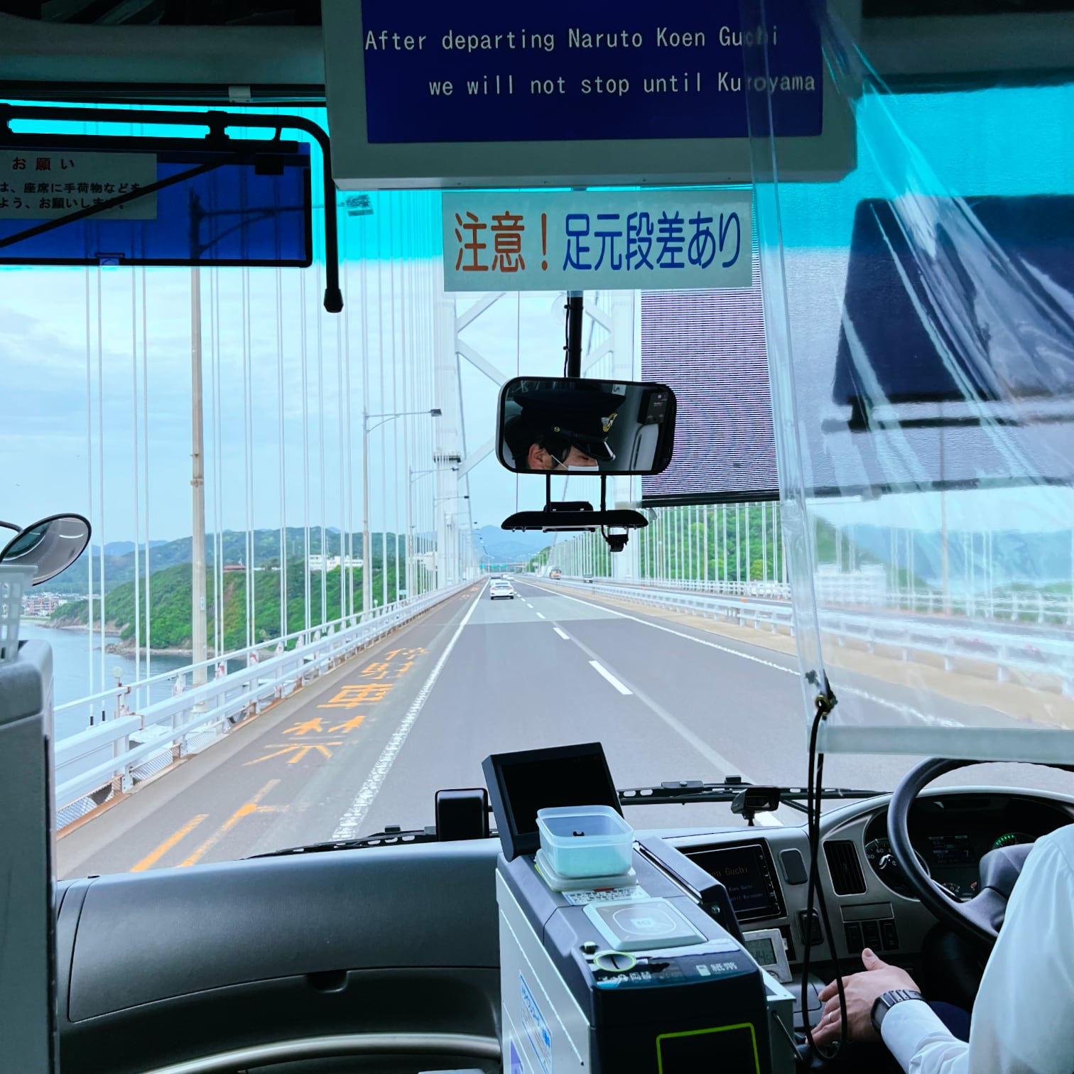 淡路島の南端を巡った翌日は、大鳴門橋を渡って四国の鳴門を走る。ただし、橋は自動車専用であり、フェリーもない。幅1,340mの鳴門海峡を目の前にしてサイクリストは途方に暮れしまう。そこで自転車による地域振興を目指すASAトライアングサイクリングツーリズムの一環として、ハコバスと呼ぶサイクル・バスが運行されている。サイクル・トレイン以上に珍しい貴重なサービスだ。