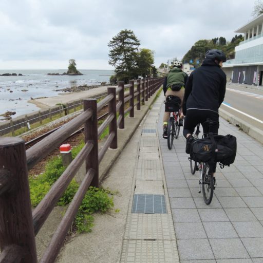 一方、東側ルートのようなサイクル・トレインがないのは残念。富山と氷見の間はJRで輪行可能だが、その先の鉄路はないので、必ず往復しなければならない。そこで、西側ルートの始端である県境までサイクル・バスを走らせてはどうだろうか? そこからは左手に海を、前方に山々を見渡しながら富山市に向かって走ることになる。北風が多いそうなので、追い風になるのも好都合だろう。
