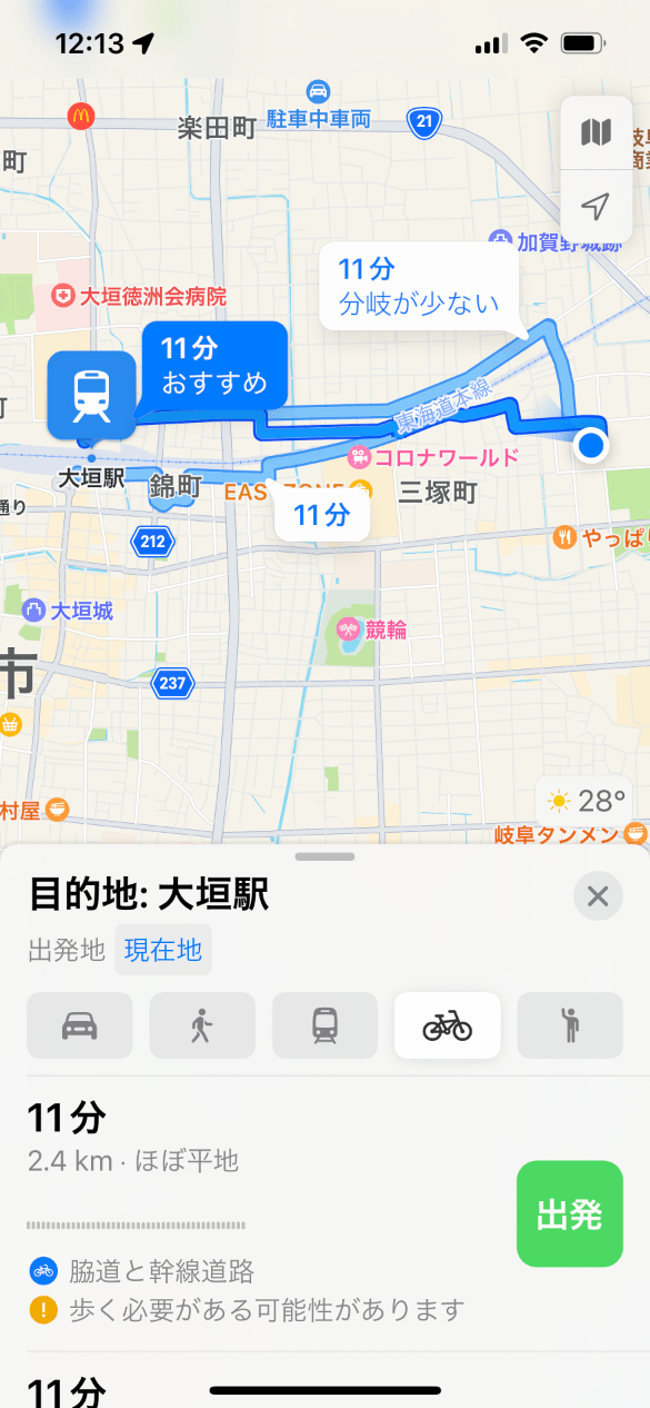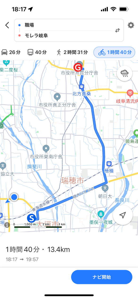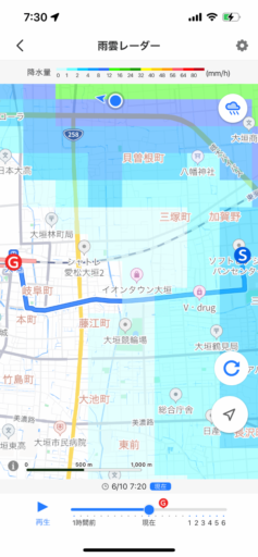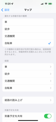 自転車を頻繁に利用するなら、Appleマップの設定で優先する移動手段を自転車にしておこう。他にも自転車でのルート検索で、坂道や交通量の多い道路を利用しないように設定できる。Yahoo!マップでは自転車に関する設定がない。ただ、直前に利用した移動手段が次にも使われるのは使い勝手が良い。さらに雨雲レーダの表示は気が利いている。風速風向など更なる情報の統合も望まれる。