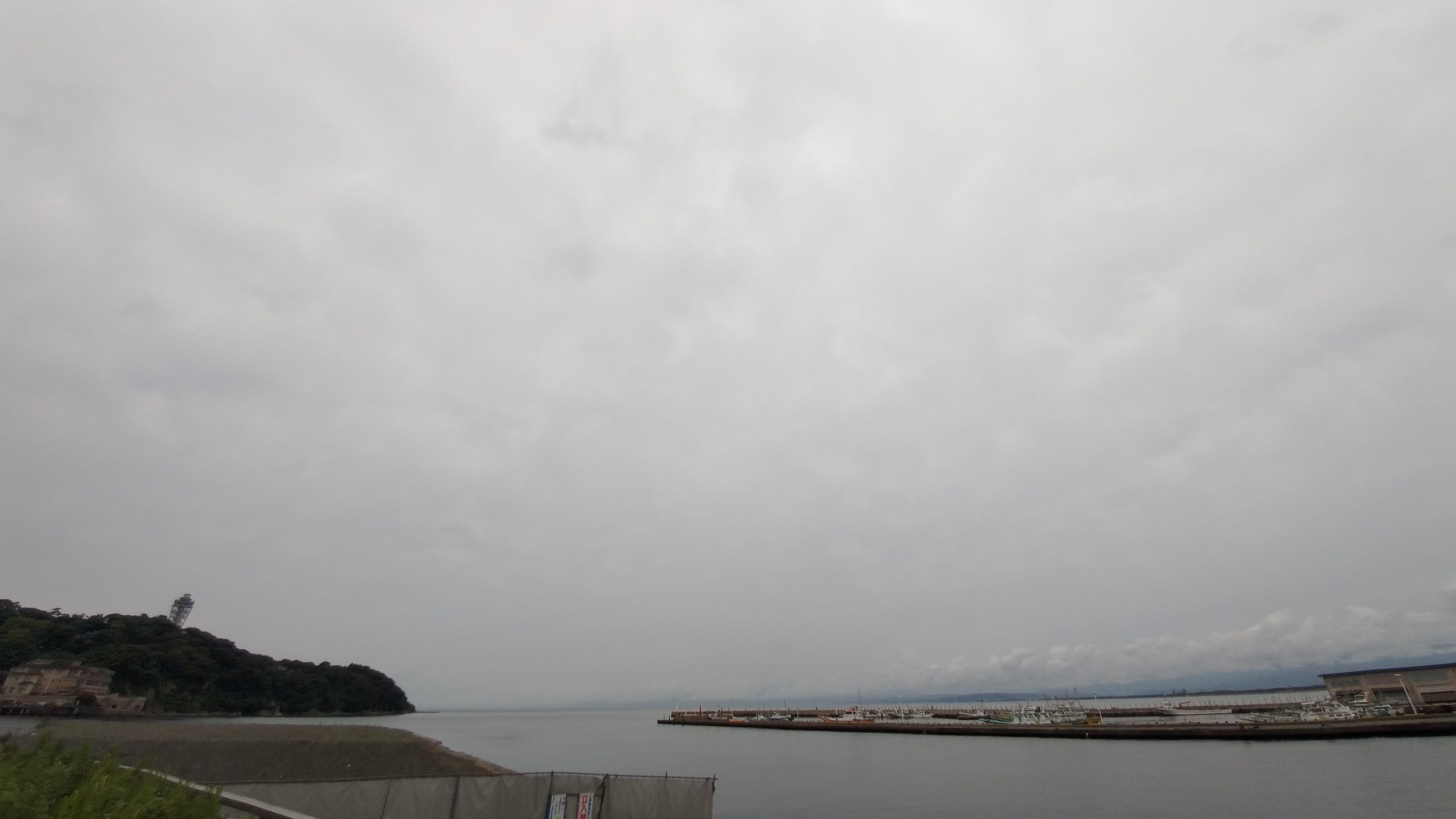 海に出た自分たちは江の島に渡って食堂に入り、古びた建物の二階の座敷でトンビの声を聴きつつ海鮮丼を味わった。入店前にパラつき始めていた雨は、やがてすっかり本降りになった。水の道のサイクリングにぴったりの締めくくりだ。
