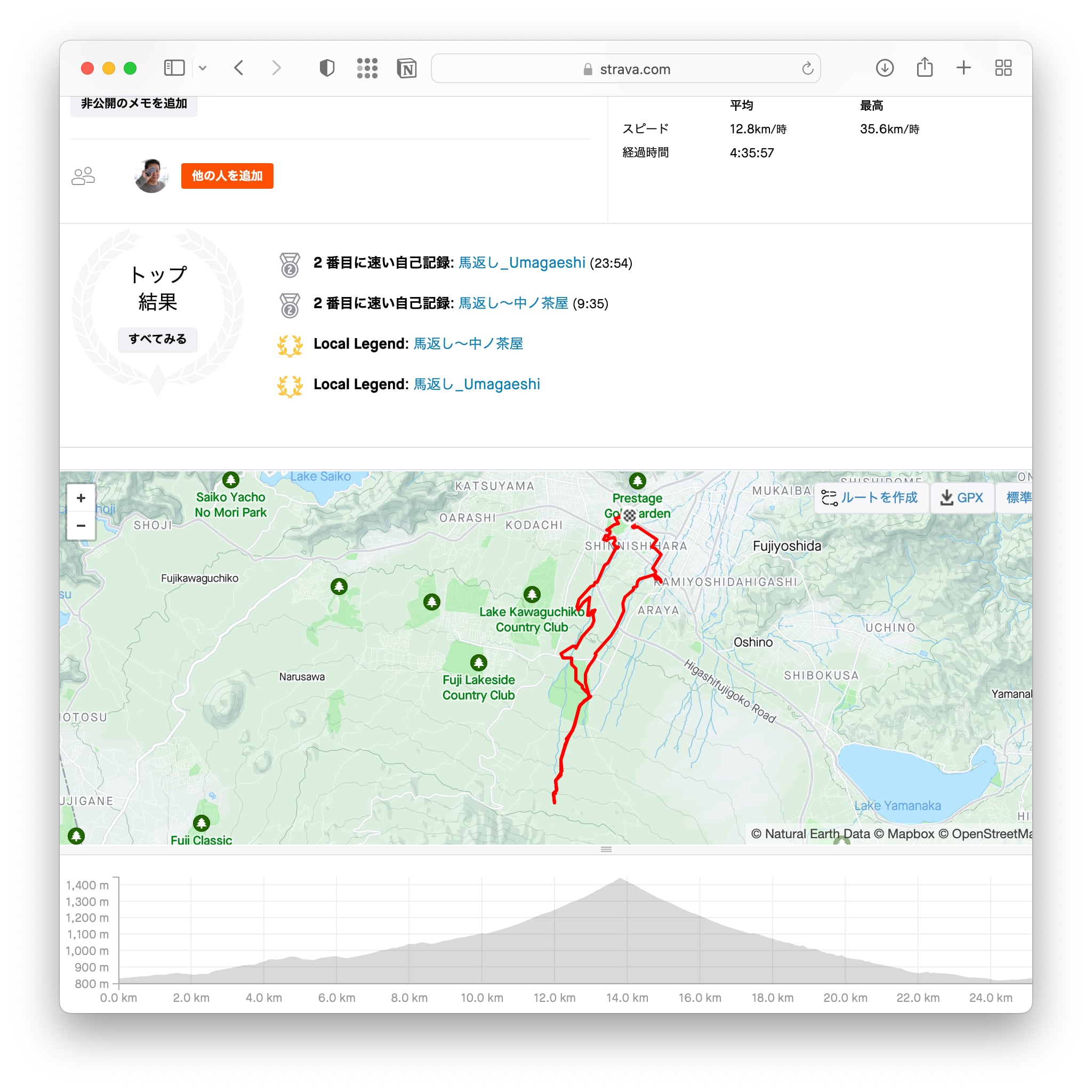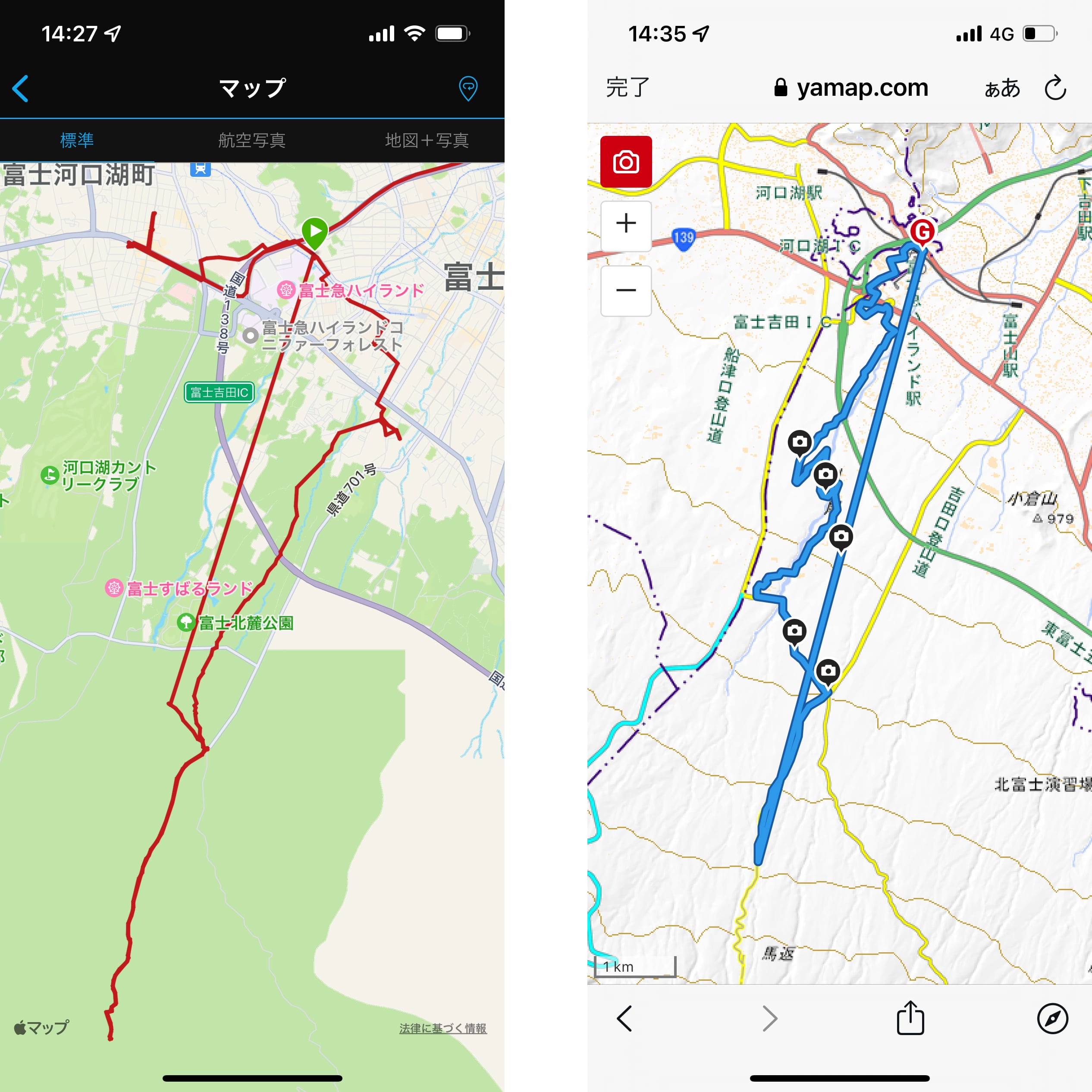 ちょうど先日の富士山麓のライドでも、レンタル・バイクにGarmin Edge 830を取り付けていた。ところが、操作ミスで出発後しばらくログを記録しておらず、終了後は自動車での移動も記録していた。一方、同行者が利用していたYAMAPアプリでは、原因不明ながらライドの後半が記録されていなかった。それぞれ不完全であるものの、2つを合わせればライドの全行程になりそうだ。