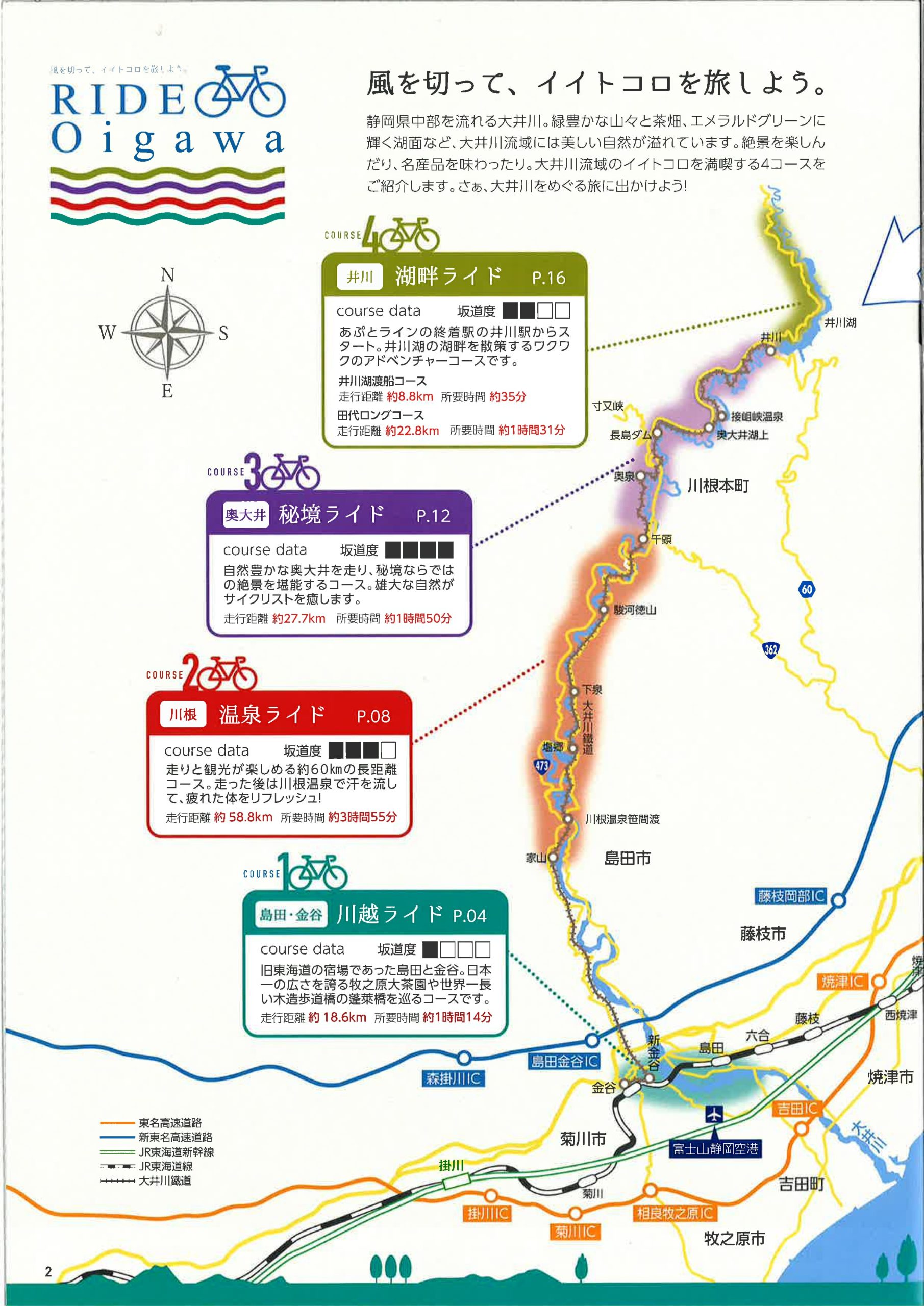 大井川は上流から下流までさまざまな魅力に溢れている。大井川鐵道での観光客は多く、トレイン・ツーリズムは盛り上がっている。しかし、サイクリストはリバティで一人見かけただけで、魅力がアピールされていないように思える。コース情報の再整備、電動アシスト自転車のレンタル、より簡便なサイクル・トレインやサイクル・バスの運行などに取り組んで欲しい。是非もう一度行きたい、のだから。