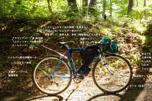 今回の夏期バイクパッキングに出るにあたっての自分の旅装は、かなり真面目に考えたものだ。基本ポイントは軽さと使い勝手の両立。自己採点では85点くらいだろうか。完成度は高いが、改良の余地はまだまだある。