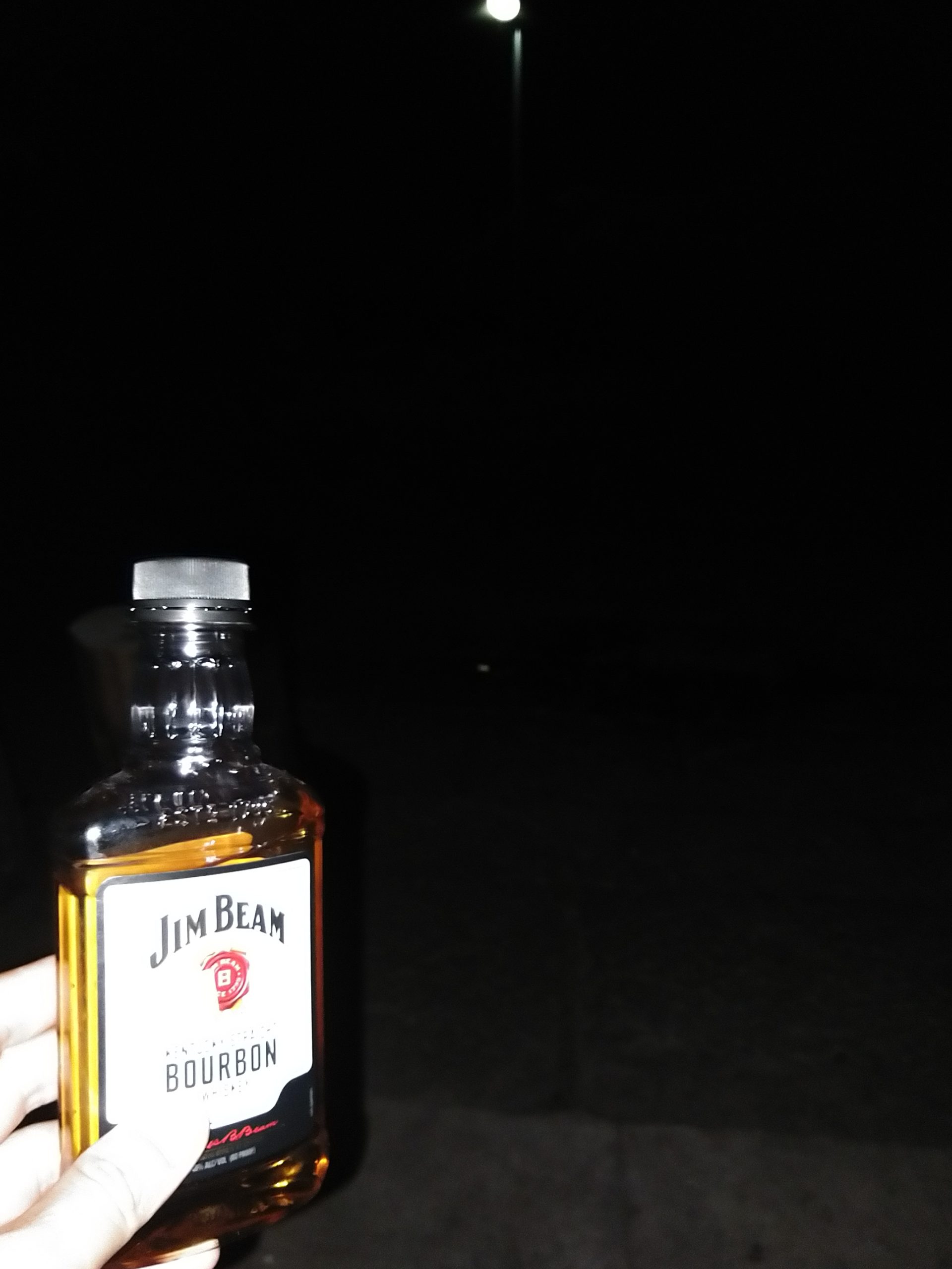 夜の一杯は、日本のバイクパッカーの定番と思われるプラボトルのジムビーム