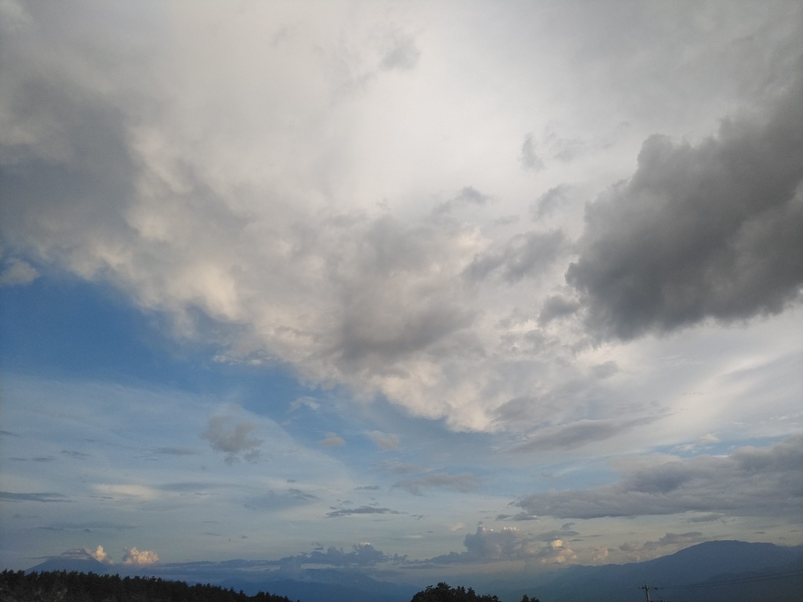 初日は輪行で日没過ぎに岡谷入り。諏訪盆地でも都内よりずっと涼しい。夜風を楽しみながら夕食へ。空の一角がたまに光るが、予報では天気は曇りのまま持つはず。行こうと思った食堂は早じまいしたらしく、その先のラーメン屋に吸い込まれる。マスターいわく前夜は土砂降り。夏には毎日のようにそういう雲が湧くエリアである。