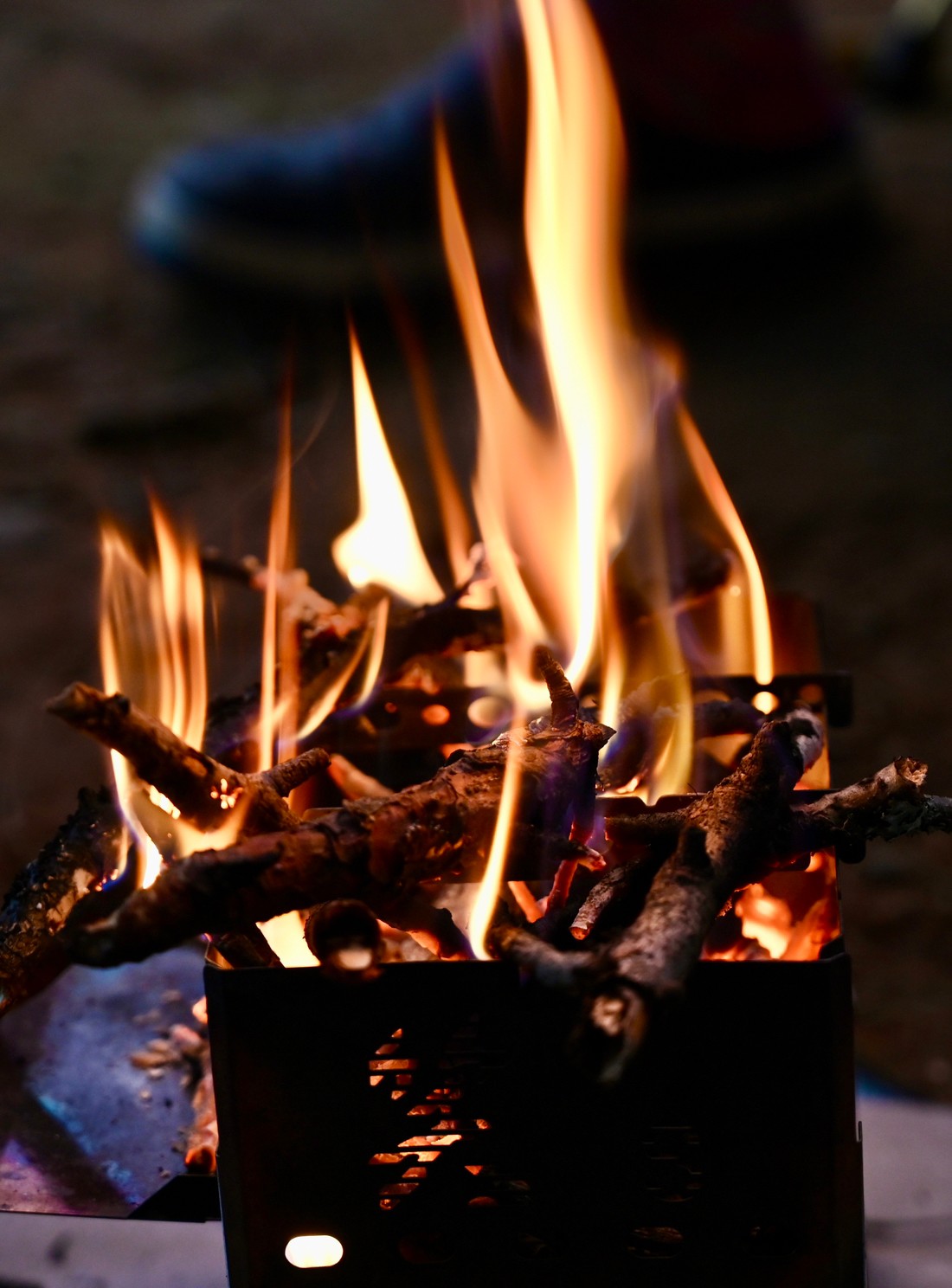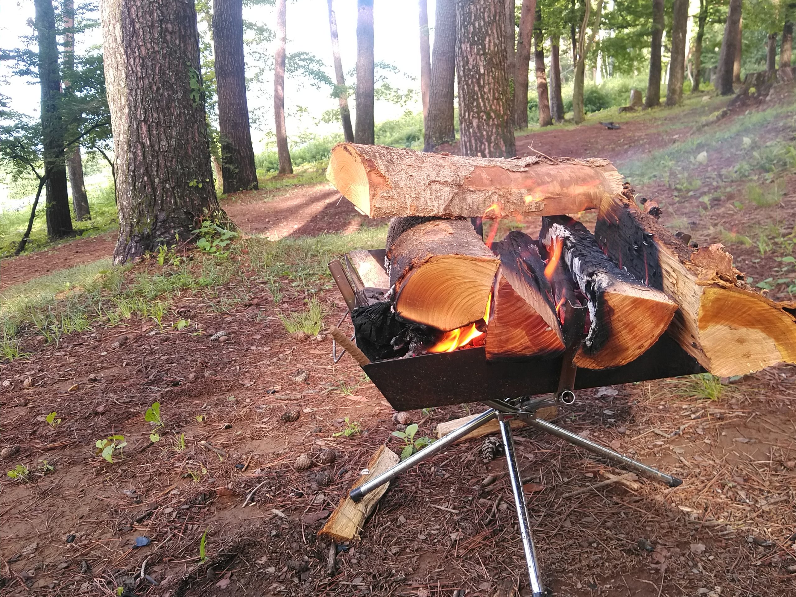 最終日である四日目は、とにかくのんびり過ごすことにした。チェックアウト期限の正午までキャンプ場に留まり、道具を乾かしたり食材を腹に入れて減らしたり。焚火も前夜は雨で中断となったので、薪を全て燃やすにはどのみち時間がかかる。