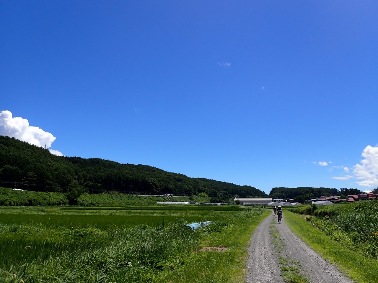 迂回班と合流、舗装路をちょっと行くと間もなく里に抜ける。陽射しは強いが湿度は高くない。谷の反対側に八ヶ岳が聳え、その背後に白い雲が育っている。甲州街道まで出てコンビニで補給、そこから見えた宮川のグラベルを走ってレストランでランチ(ナポリタンが名物らしい)。腹を満たした後は八ヶ岳の裾野に上がり、これをなぞる形で小淵沢方面へ向かう。信州とはいえ、真っ昼間、標高のそう高くないところの日向は暑さがこたえる。信玄棒道を通ろうと提案し皆も最初は賛成していたが、段々と帰りの輪行などを意識して気もそぞろになるメンバーが増え、小淵沢アウトレットで解散となった。