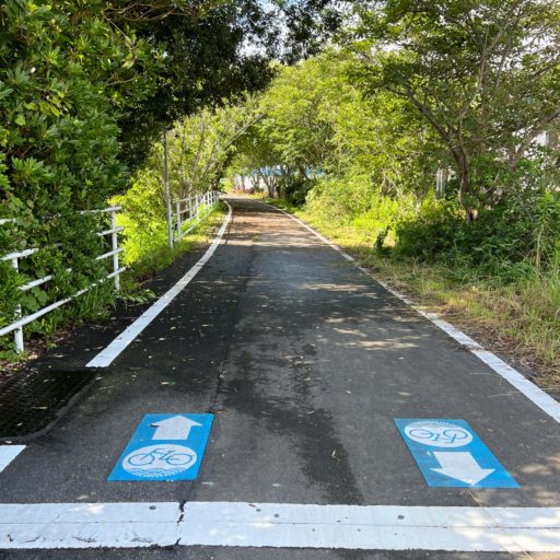 廃線跡の自転車道路と太平洋岸自転のマーク