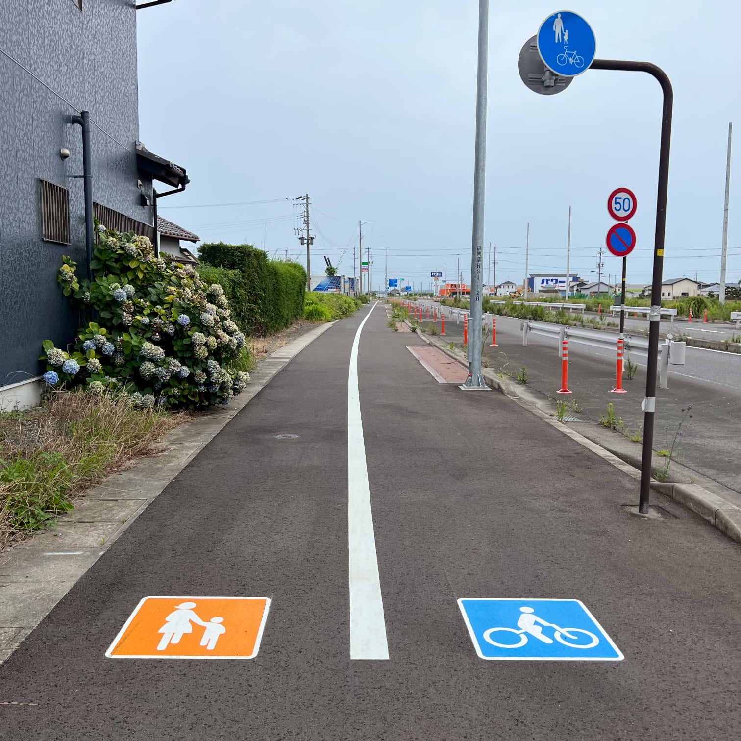 廃線跡の自転車道路と太平洋岸自転のマーク