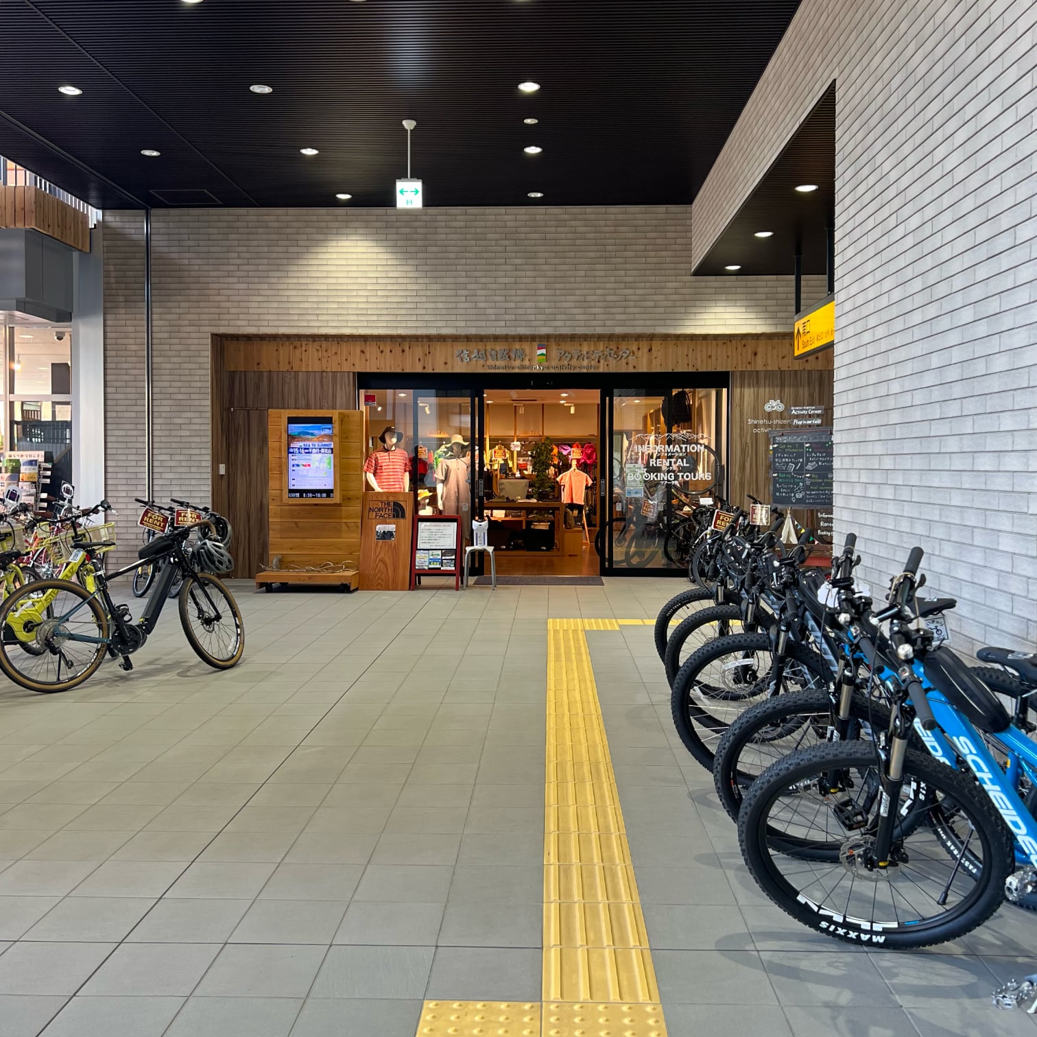 斑尾高原の翌日は山を下り、飯山駅の信越自然郷アクティビティ・センターで自転車を借りて周辺をライドした。ここは2019年にリニューアルとのことで、清潔で整った施設に充実したラインナップのレンタル自転車が並んでいる。トレッキングや冬のスポーツのレンタルもあり、アパレル販売や周辺情報の提供もある。新幹線駅でもあり、この地域で自然に親しみ身体を動かして遊ぶ拠点になっている。