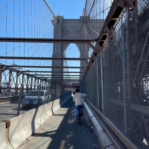 ブルックリン地区には、マンハッタンではあまり見かけなかった自転車専用レーンが多く見られた。更にブルックリン・ブリッジとその周辺には、歩道と車用道路からは完全に分離されたサイクリング・ロードもあり、とても走りやすい環境であった。マンハッタンでは見かけることがなかった、サイクリングウェアを着ているようなライダーも多く見かけた。ただし、ひとつ難点があるとすればCiti Bikeの自転車があまり乗り心地が良くないということである。車体が重い上にスピードがあまり出ないため、目的地まで到着するのに時間がかかる上、普通の私服を着ている状態とすぐに暑くなってしまった。
