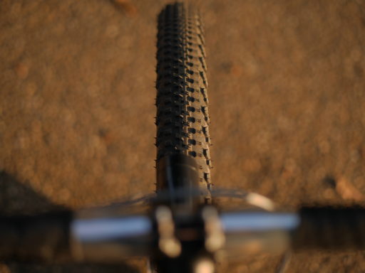 Cozmoは近場でのさらなるテストを経て、現在フロントタイヤがサイドノブのあるセンタースリックに、ステムも70mmになっている。50mmのステムでは、ハンドルバーからの入力が前輪の左右方向の動きに過剰に変換されていたらしい(ちょっとした修正舵が効き過ぎてしまう)。ステムを60mmにしたところこれが緩和されて前輪のグリップ感も良くなり、カウンターステアを保持する意識もあまり必要なくなった。舗装路・未舗装路それぞれにおけるタイヤの挙動の癖も、パターンの違うものに履き替えたことで改善された。そしてその結果、70mmのステムがマッチするようになった。リーチが長くなり過ぎる心配もあったが、ブラケットポジションでもドロップポジションでも、両手をバーから浮かせた状態で無理なくBB上でバランスをとることができる。