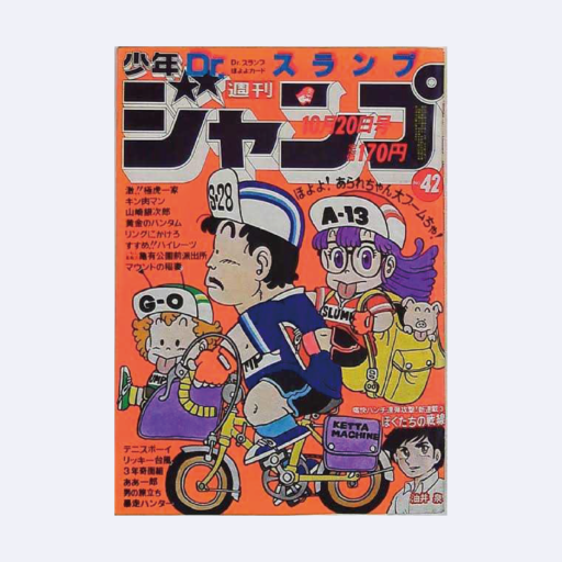 鳥山明は1980年の週刊少年ジャンプ42号の表紙を担当した。週刊雑誌の表紙は出版社、連載漫画家のどちらにとっても特別なものだ。当時『Dr.スランプ』の連載開始から一年未満の鳥山明にはなおさらのことだろう。そんな表紙を鳥山明はサイクルウェアを着た『Dr.スランプ』のキャラクター達と黄色いミニベロで飾った。さらにミニベロのリアに取り付けたサイドバッグには『KETTA MACHINE』の文字。『KETTA MACHINE』(ケッタマシーン)は鳥山明の出生地である東海地方で「自転車」を指す言葉として昭和初期に使われていた。鳥山明の自転車に対する本気さが感じ取れる。