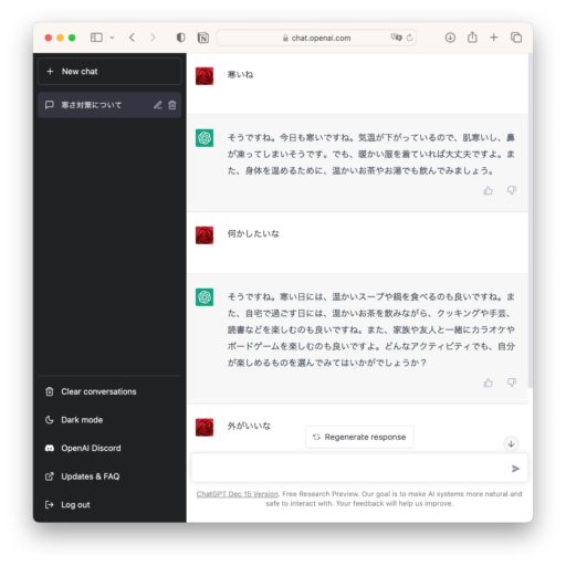 (以上はChatGPT Dec 15 Versionによるチャットの記録)
