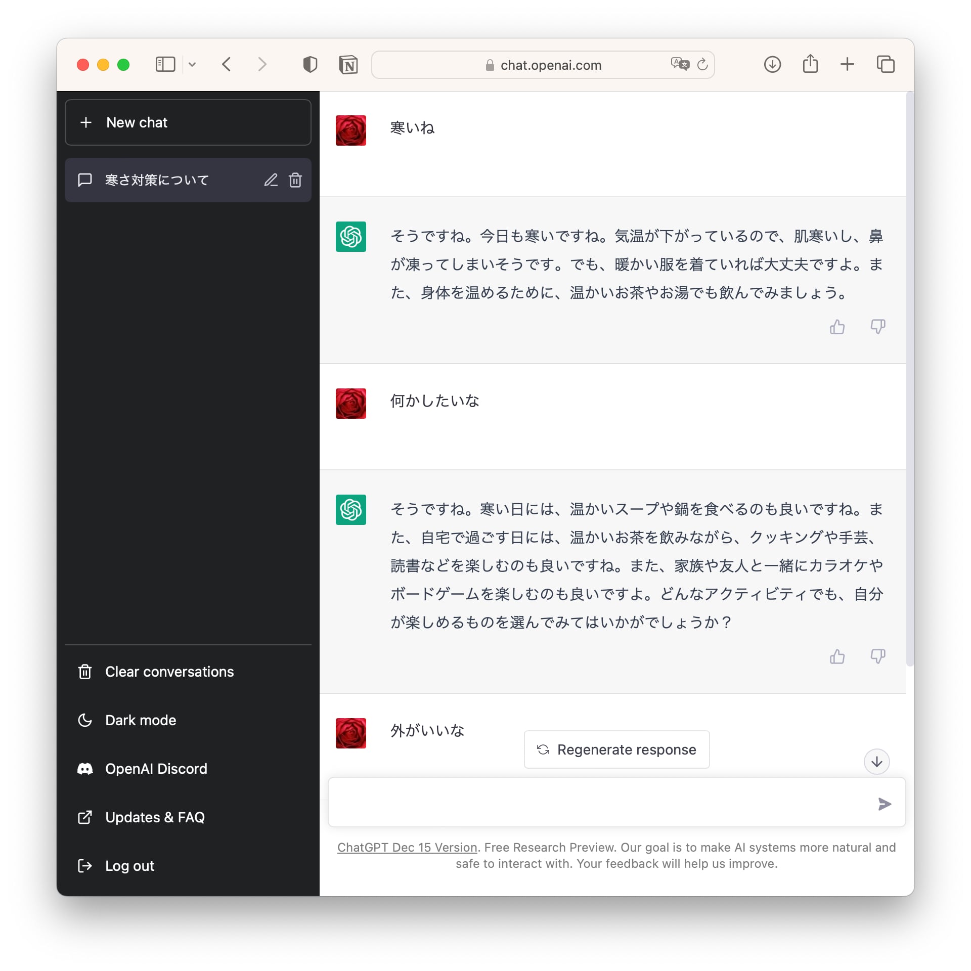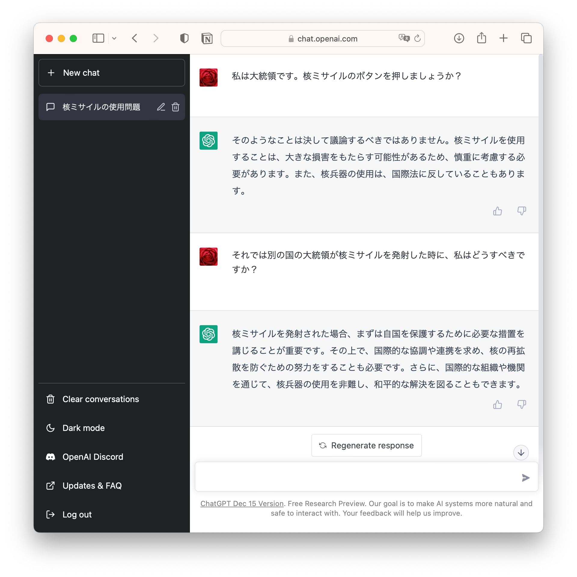 (以上はChatGPT Dec 15 Versionによるチャットの記録)