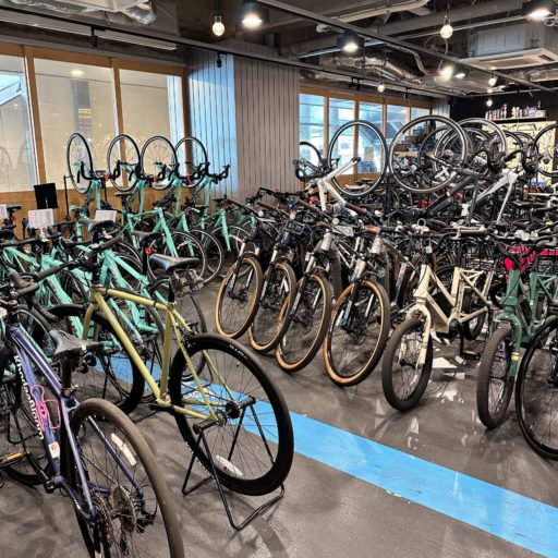 一方、地上階は人通りが多い。ここにはレンタルを兼ねる自転車ショップ、ル・サイク土浦があり、広い店内に所狭しと自転車が置かれている。後に借りた自転車はよく整備されており、スタッフの方からは丁寧で的確な対応をいただいた。惜しむらくはレンタルが10:30からで、当日中に返却しなければならない。つまり、早朝からの利用ができないので、ロング・ライドには向かないわけだ。