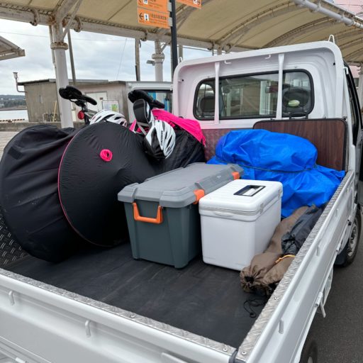 到着した港で予約していた軽トラックを借りる。荷台にはテントや寝袋などのキャンプ用品が積まれ、さらに自転車2台を乗せる。草枕の旅を望んだ訳ではない。お隣りの馬毛島でアメリカ軍の訓練などに使う自衛隊基地が建設中で、工事関係者が島中の宿や車を押さえているからだ。種子島は臨時のバブル景気に沸く一方で、観光客や観光関係者は困り果てているらしい。