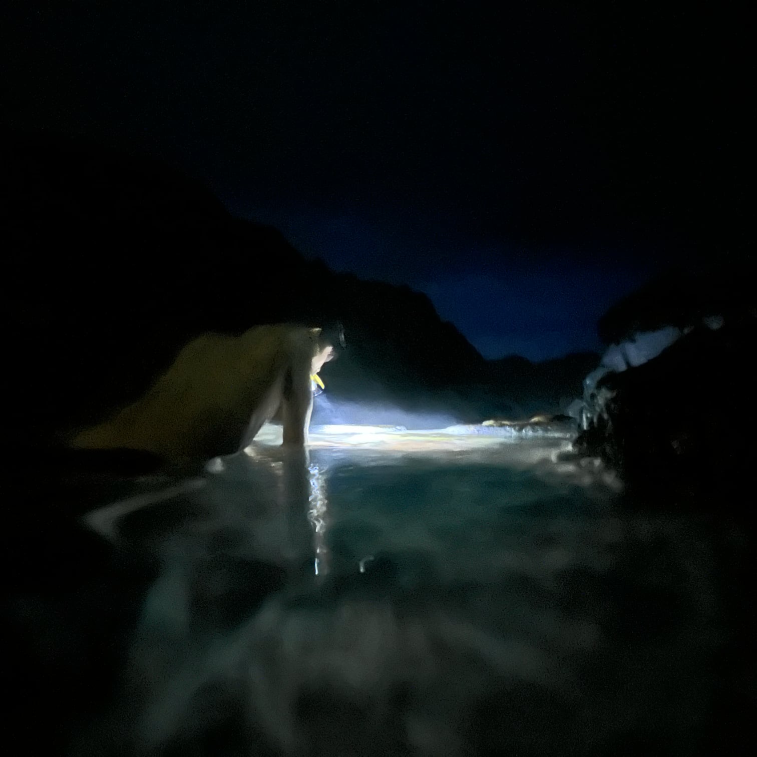 このようにして港に至り、再び高速船で屋久島に戻る。自転車を返却し、今度はレンタカーに乗り込む。降り始めた雨は次第に激しくなり、一時は車の運転が危ぶまれるほどの豪雨となる。もっとも雨に悩まされたのはこの時だけ。屋久島は雨の島とも呼ばれるだけに、幸運だったようだ。そして雨の合間には、干潮時だけ現れる海中温泉を暗闇の中で堪能することができた。