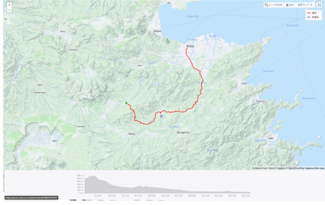 1日目は温泉地として有名な別府の街から急峻な峠を登り、かつてそこにあったであろう巨大火山のぐるりをめぐるような絶景をめぐる。壮大にひろがる高原を走り抜けて周囲の山々を眺められる爽快な道路は、もともとは自動車で走るために備え付けられた道路である。自転車で走るにはパワーを出さなければ乗り越えられないような起伏も多く、絶景という褒美をえるために支払わなければならない身体的犠牲は大きい。