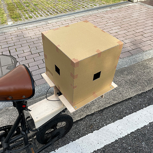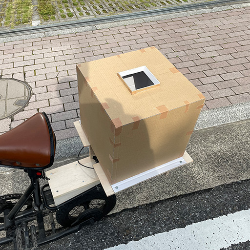 自転車と建築の組み合わせとしてまず思い浮かんだのが移動する建築である。通常、太陽の位置の変化により、ゆっくりと屋内の陰影が変化するが、建築自体が移動する場合は、周囲の環境や建築の太陽に対する位置関係の変動により、屋内の陰影はいかに変遷するのだろうか。さらに、建築の移動に伴い開口から見える風景も変化する。こうした敷地から動かない建築の前提を覆す表現に対して強い関心を抱き、実験するに至った。