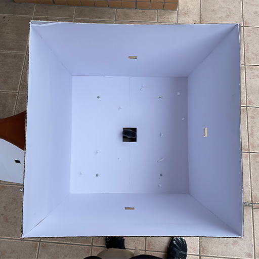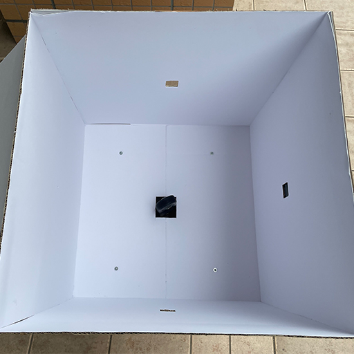 これらの変更により、前回よりも光の像を鮮明に映し出すことができ、幻想的な空間を実現することに成功した。しかし、光の像を鮮明に映すために模型内を暗くした結果、HMDで鑑賞する際には粗さが目立ってしまった。また、模型のサイズを大きくしたところで、HMD上で空間の広がりは感じず、視覚的な明瞭さが空間を強く印象づけることが分かった。結論として、霧のような光の像が空間を彩る様子は魅力的と言えるかもしれないが、HMD上では予想していたほどの体験を味わうことができなかった。