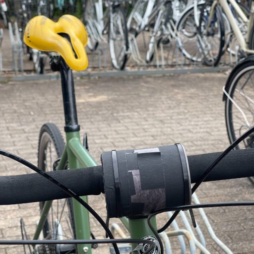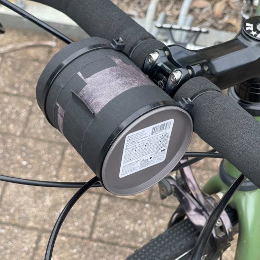 ハンドルバーに固定したピンホールカメラ(固定にはジップタイを使用)