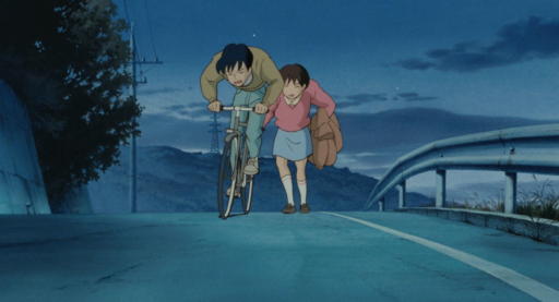 また、自転車の二人乗り(トトロでは三人)の描写はジブリ作品ではお約束だが、「耳をすませば」のこのシーンでは、二人乗りに加え、無灯火での逆走という非常に危険な行為が描かれている。(ぜひ映画を見て確認してほしい)「耳をすませば」は、ファンタジー要素はなく、日常の中に潜む素晴らしさを描き出すことに力点を置いた作品である。この危険の描写は恐怖知らずの中学生男子の自転車走行のリアルを表現するためには必要だったのではないかと考える。