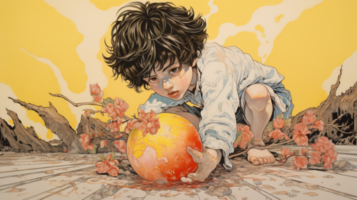 紙芝居の制作に際して必要なものはビジュアルと物語の二つになる。それぞれAIの力を借りて出力し、編集とデジタルデータをアナログへ置き換える作業を人間である筆者が担当をする。ビジュアルはMidjourney、物語はもも太郎のあらすじをベースにChatGPTで出力をした。