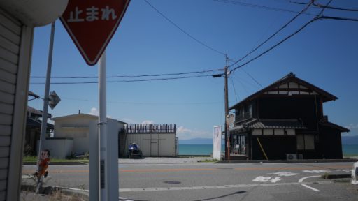 食料の買い出しスポットとしてあてにしていたキャンプ地の近くの個人商店が閉まっていたので、街道筋を少し南下して木之本のスーパーへ。夕方の光も手伝ってか、旧道の角から駅の方へ緩く下る道のパースペクティヴに形容しがたい美しさがあった。