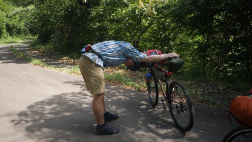 解散後、自分を含む3人は未舗装路を探索しつつ敦賀まで出てみることに。がっつりサイクリングは久々という仲間は最初に入った小山のヒルクライムでヘロヘロになっていた。いわく身体が放熱のやり方を忘れている、と。