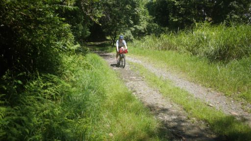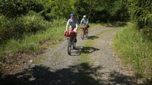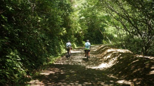 木蔭のグラベルを進んでゆく。途中で自転車を取り替えたりも。