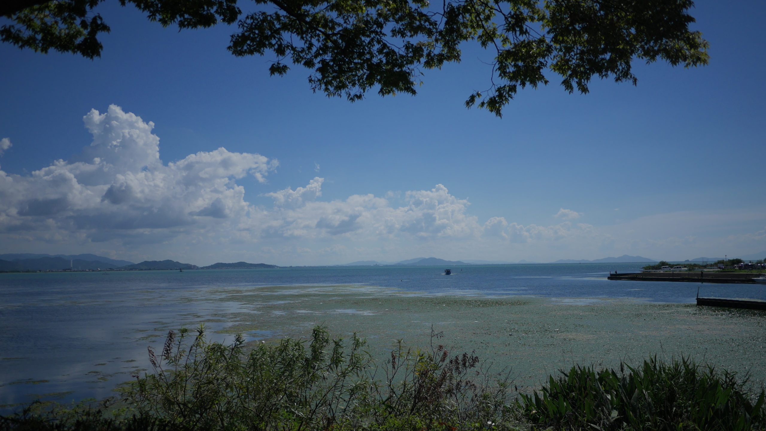 琵琶湖畔の木蔭を辿って北へ。淡海の別名の通り、海のようだが風はベタベタしない。酷暑の続いた夏、この日は落ち着いて最高31度くらい。ずいぶん過ごしやすく感じられた。