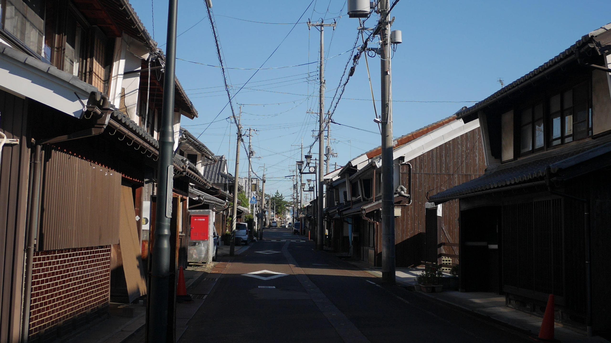 食料の買い出しスポットとしてあてにしていたキャンプ地の近くの個人商店が閉まっていたので、街道筋を少し南下して木之本のスーパーへ。夕方の光も手伝ってか、旧道の角から駅の方へ緩く下る道のパースペクティヴに形容しがたい美しさがあった。