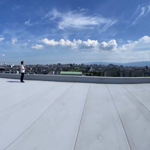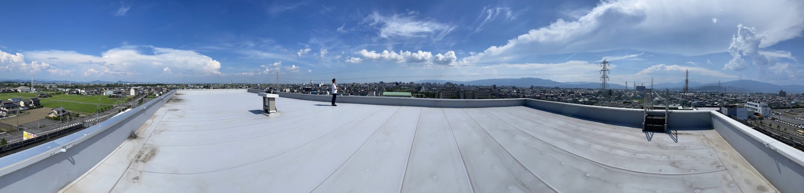 新棟の屋上とそこから見える景色(パノラマ写真にリンク)